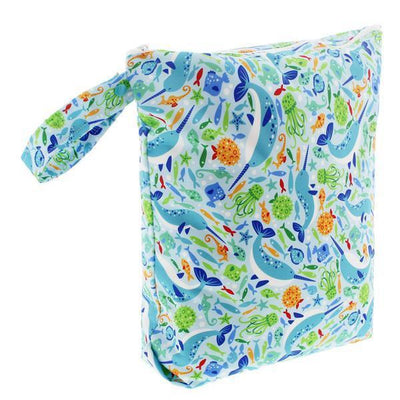 This is a waterproof bag to keep your wet and/or soiled diapers in while you're out and about. Zipper top closure secures the bag shut. This bag can accommodate 6-8 diapers.