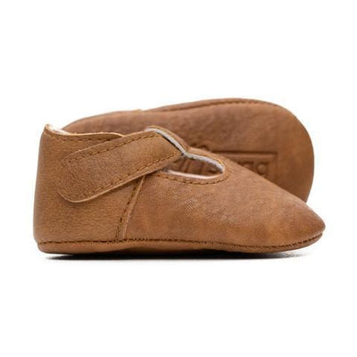 The Moxy® is our most popular shoe style, and for good reason too! With an elastic T-strap band, the Moxy® is easy to put on and take off while remaining snug to your child's foot. Each shoe is lined with cotton to keep the foot dry and warm. Sizes 4 and up come with a hard sole for any new walking child in your home!