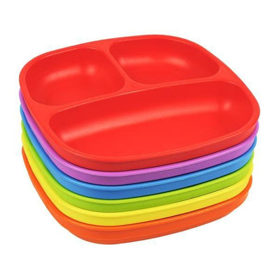 Bring the rainbow home with this colorful assortment of our popular divided plates. RePlay’s divided plates not only help portion control and keep food separate, but they’re also made from recycled polypropylene. The divided plate's deep walls are perfect for little ones learning to feed themselves. Plus, the ample sections of these colorful plates provide plenty of room for any mealtime combination. All Re-Play divided plates are made from recycled milk jugs (HDPE recycled plastic), so not only are they better for your child, they are better for your environment.