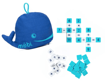 Build number sense and allow your child to practice mathematical operations. Kids connect the number tiles to each other crossword-style, making number sentences that are correct. You can play for speed, or play for practice. Kids can play with a friend, alone, cooperatively, or competitively. Way more fun than a worksheet, and requires creative use of numbers and thinking skills to use all their tiles. Möbi comes with a cute whale pouch that is easy to store and transport. This game includes the operations of addition, subtraction, multiplication, and division for kids who have been introduced to all 4 mathematical operations.